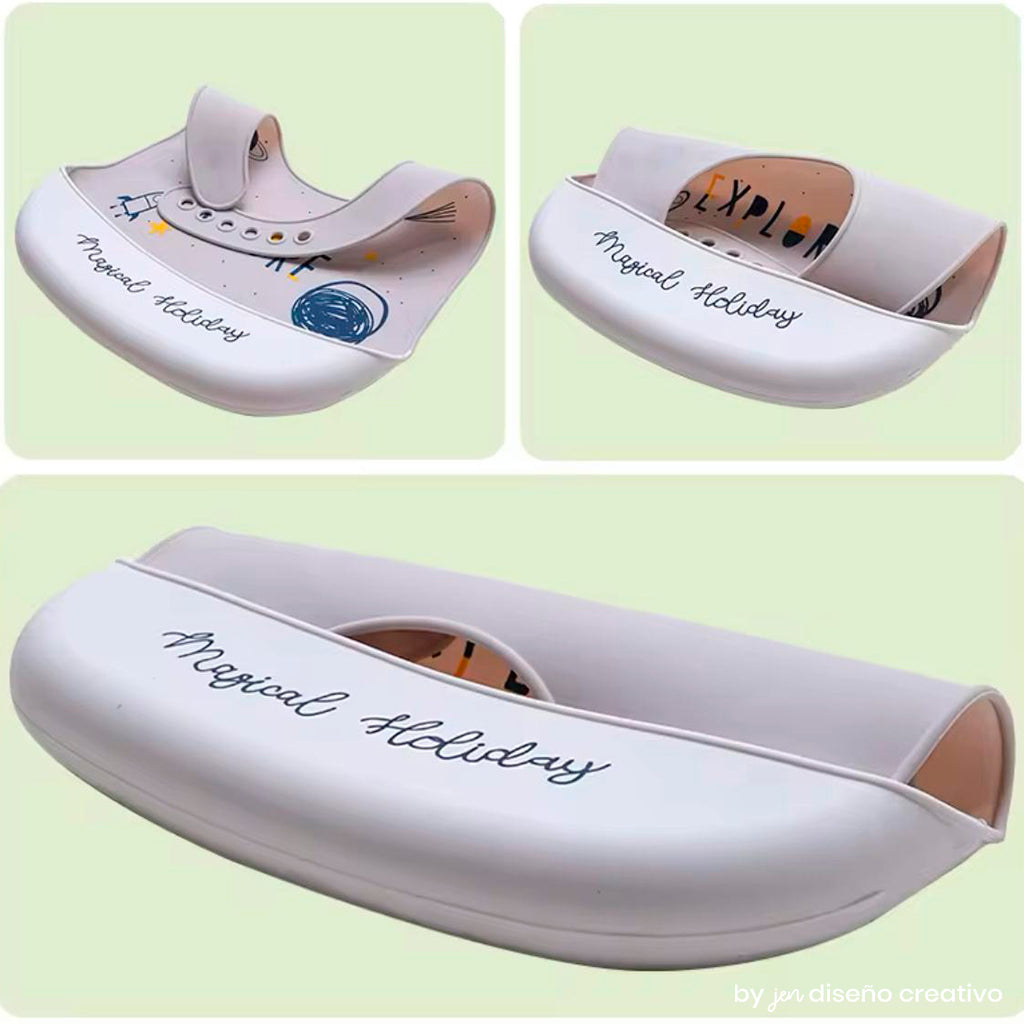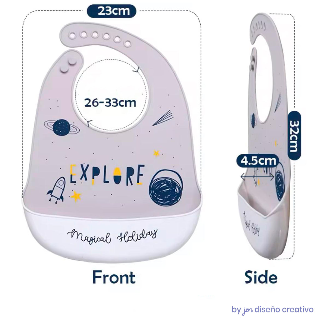 Haz de la hora de la comida un momento limpio y divertido con nuestro babero de silicona para bebé. Diseñado pensando en la comodidad y la practicidad.
